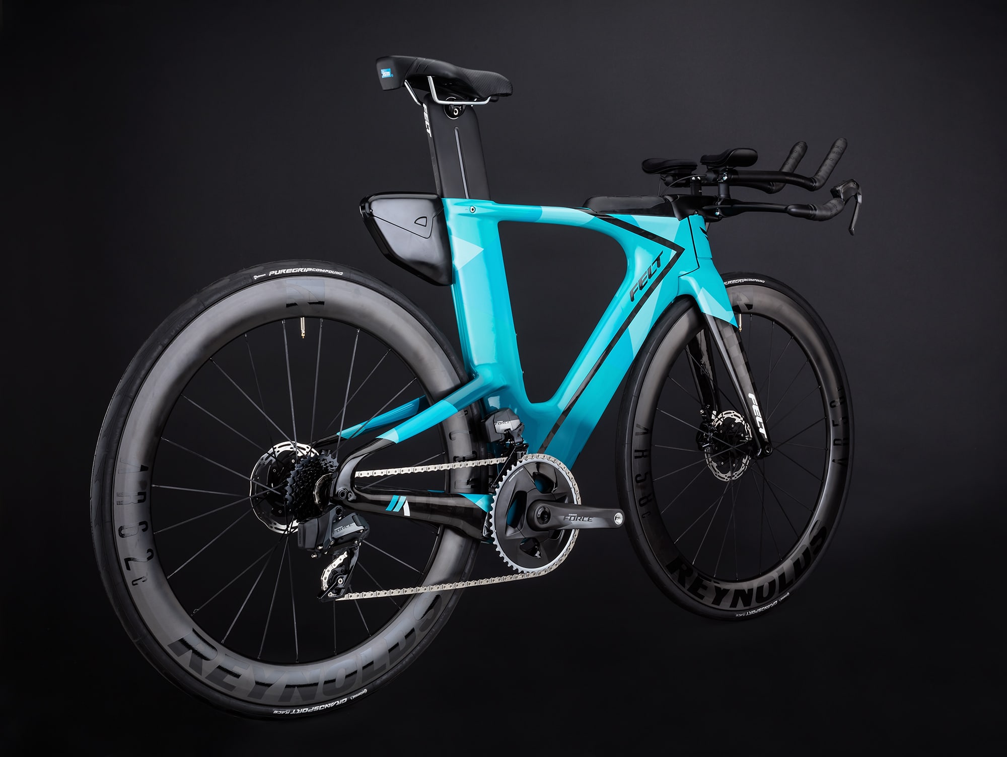 Felt IA Advanced Force eTap AXS er en triatlonsykkel med aero-karbonramme. Rammen er laget med førsteklasses materialer, med de beste komponentene, for å skape ekte harmoni og spare sekunder. Sykkelen har Reynolds karbonhjul.