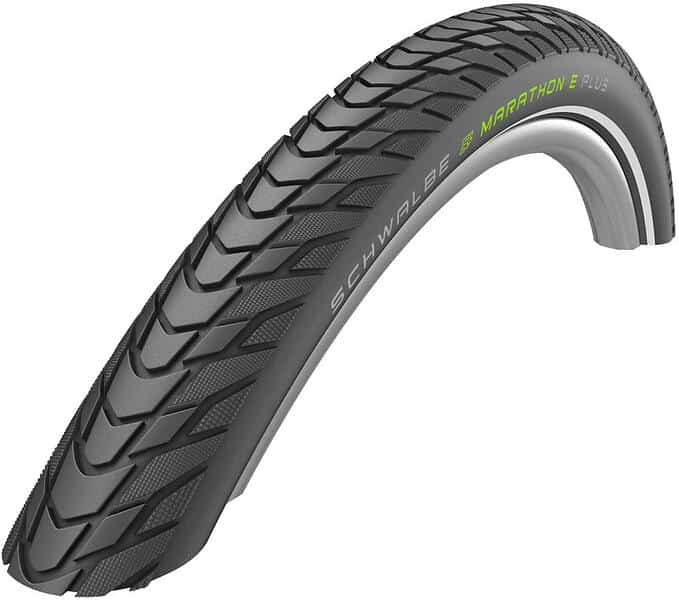 Brand SCHWALBE Item type Tire Item name MARATHON E-PLUS Tire type Non folding tire Diameter 28″ Width 50 mm Size – English 28 x 2,00 ETRTO (50-622) Protection Smart DualGuard Color Black Compound ADDIX E Tread HS498 Sidewall TwinSkin TPI 67 TPI Reflective tape Yes PSI max 65 PSI Weight 1210 g